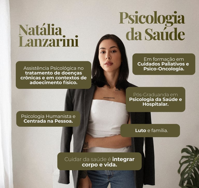 Minha escolha pela Psicologia da Saúde nasceu do encontro entre experiências pessoais e profissionais ao longo da vida, que me aproximaram das realidades do adoecimento, do cuidado e das transformações que esses momentos podem trazer para a vida de uma pessoa e de sua família.